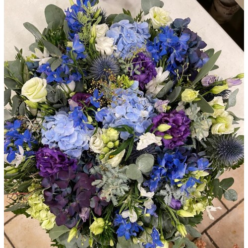An amazing abundance of Hydrangea's, Lisianthus, Delpiniums with Mixed Foliage.